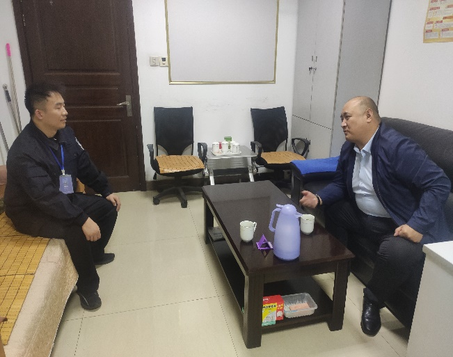 公司黨委委員、副總經(jīng)理丁德鵬到建行大隊與新安置的退役軍人邵珠海進行了談心談話,詳細了解安置退役軍人的基本信息、家庭情況、專業(yè)技能、特長、愛好等情況,詢問到公司來后在工作與生活方面的情況。在談話中,安置退役軍人暢所欲言,丁德鵬同志對于提出的疑問進行詳細的解答,氛圍歡快溫馨。