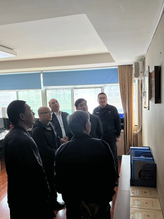 近日,淄博市公安局治安支隊五大隊大隊長鄧占武一行到金融護(hù)衛(wèi)中心郵政銀行大隊實地檢查、指導(dǎo)工作,公司黨委成員、副總經(jīng)理丁德鵬陪同檢查。